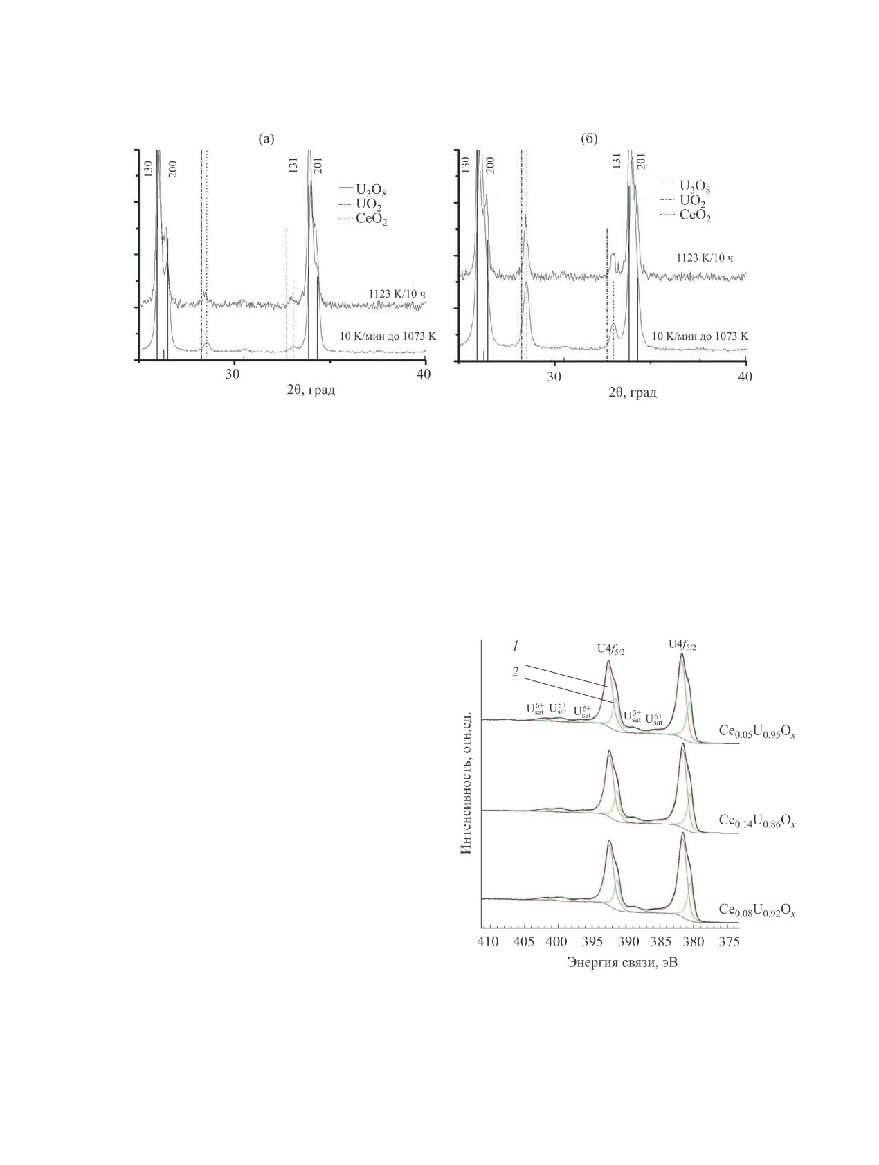 смешанных оксидов (U,Ce)Ox в аналогичных ус-