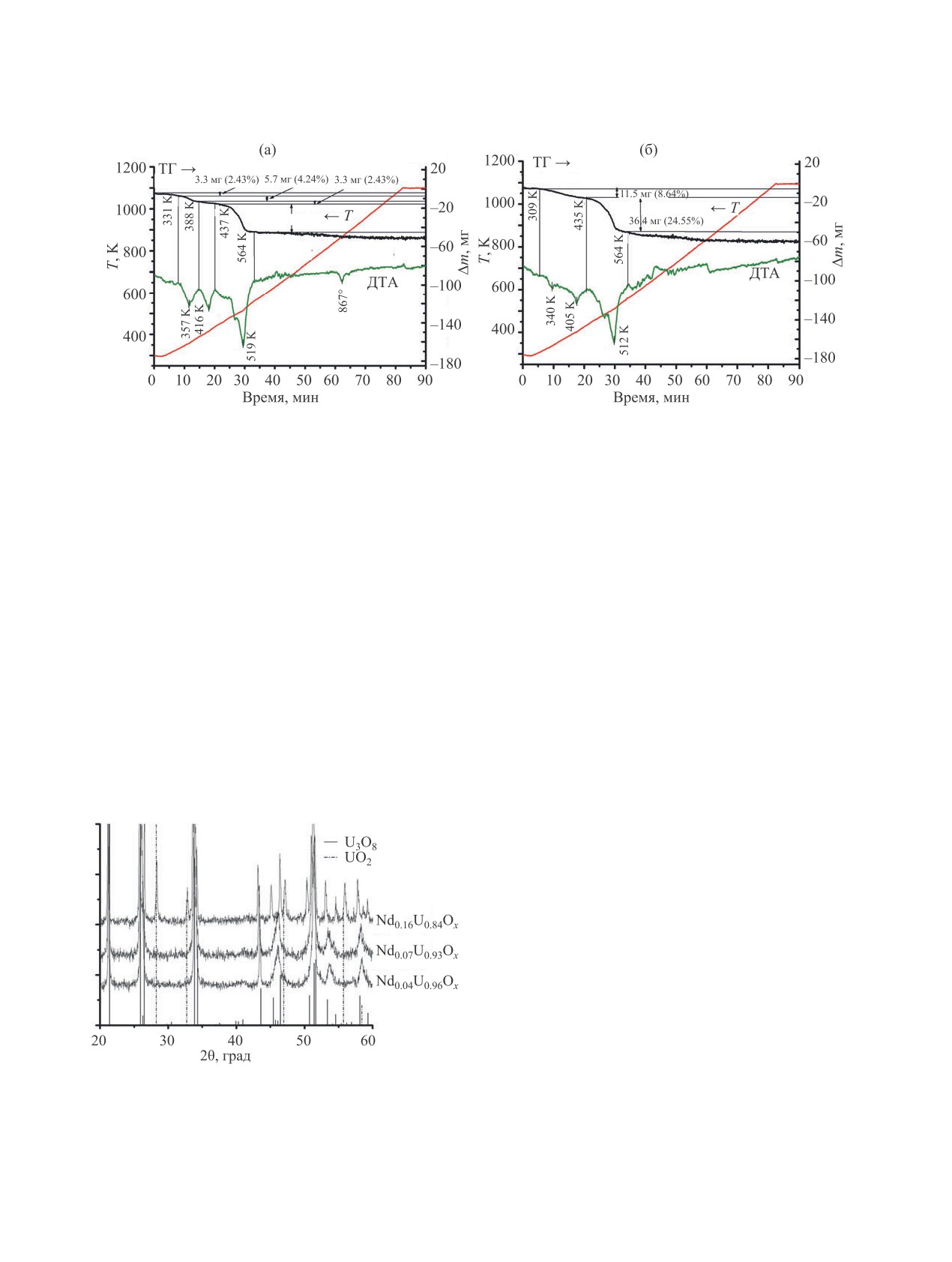 на, при этом часть церия остается в фазе нерастворимого в воде осадка. Конверсия (U,Nd)Ox в тех же