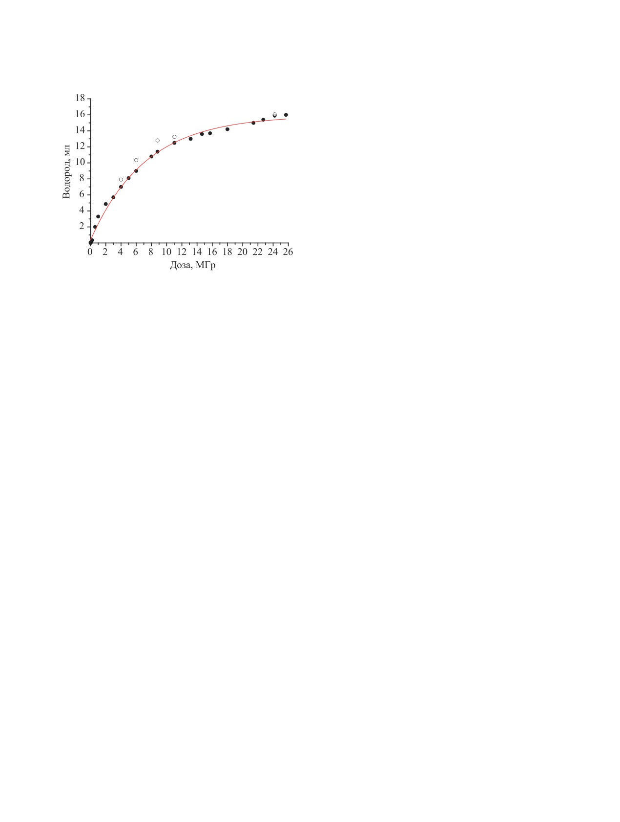 0.005 молекулы/100 эВ. При больших дозах накопление водорода достигает стационарного уровня.