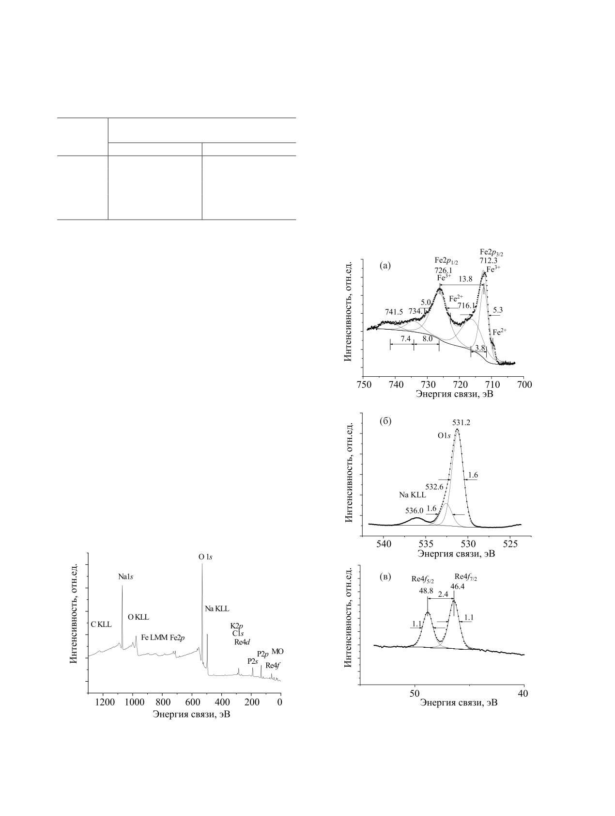 ния рения в полученных стеклах - Re(VII), а 97% железа находится в виде Fe(III) и 3% в виде Fe(II).