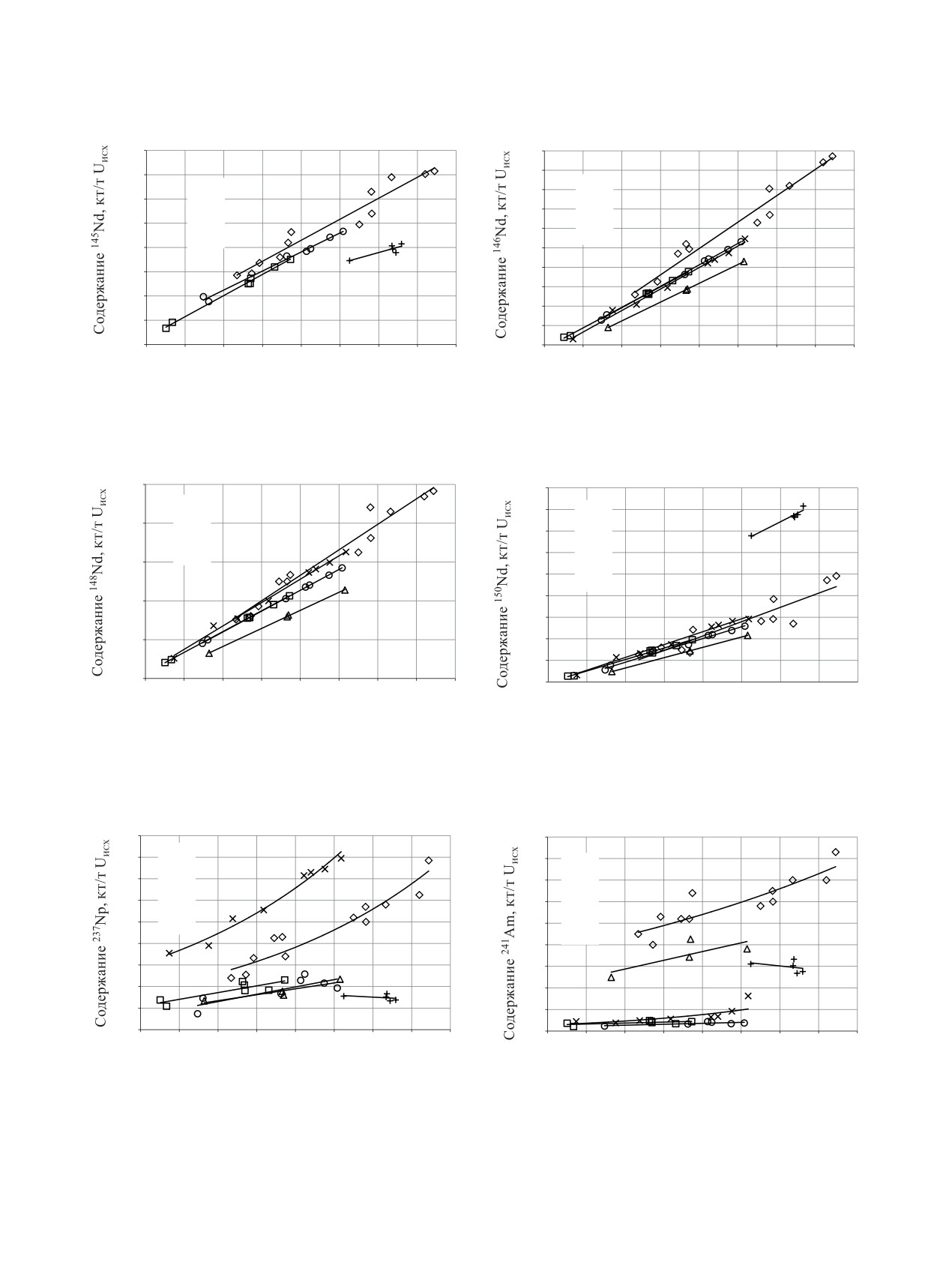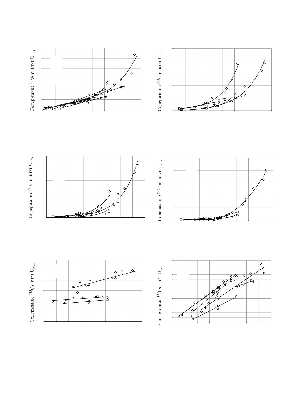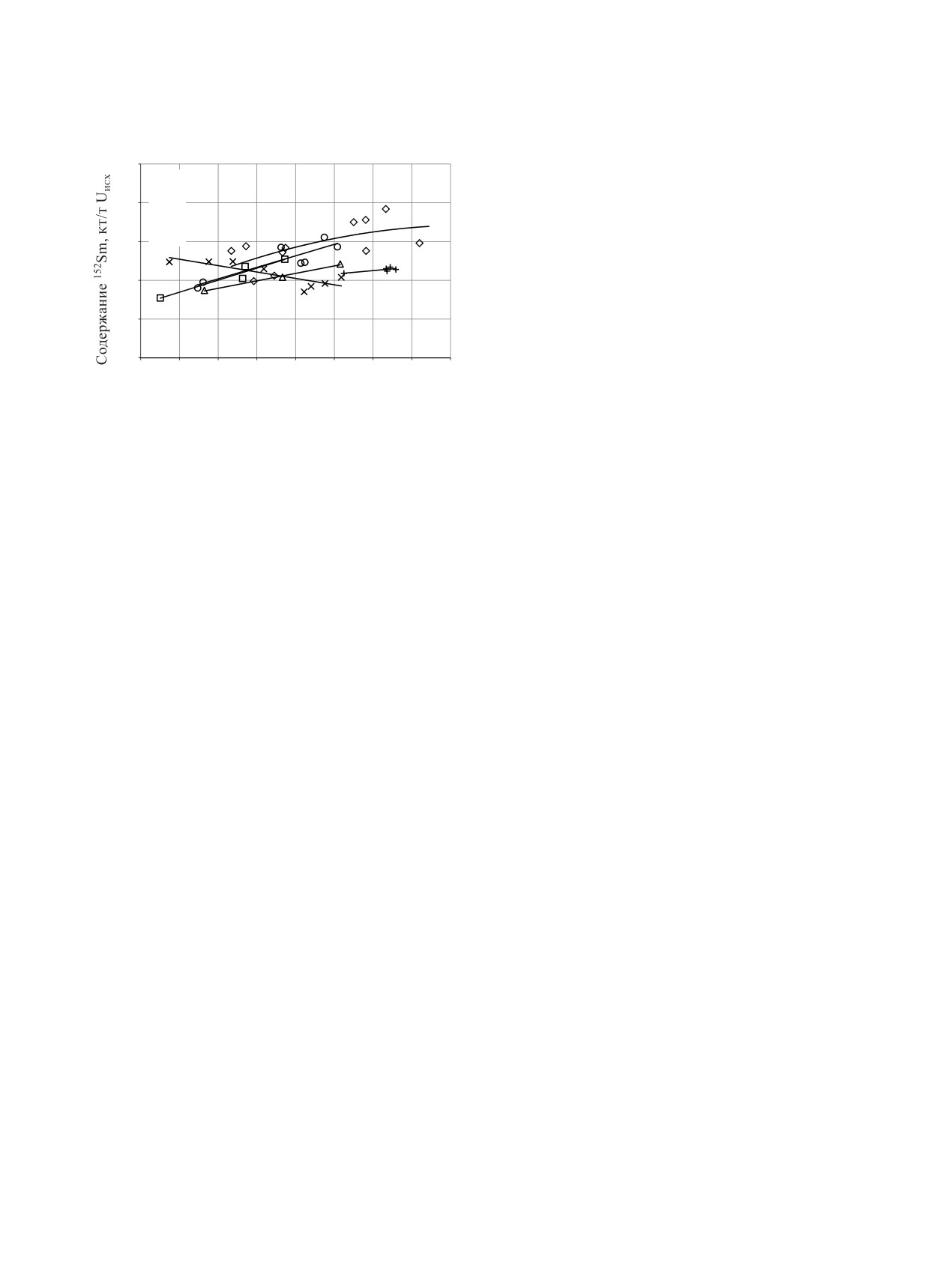 держания и величин выгорания 12 образцов ядерного топлива, облученных в реакторе ВВЭР-440. На