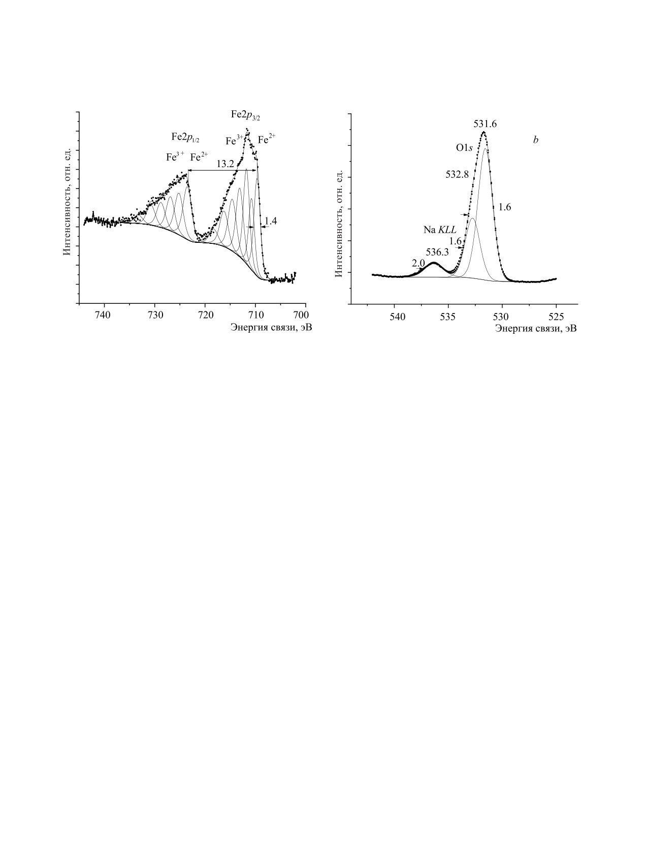 рения в аналогичных условиях; около 83% Fe присутствует в виде Fe(III), остальное количество - Fe(II).