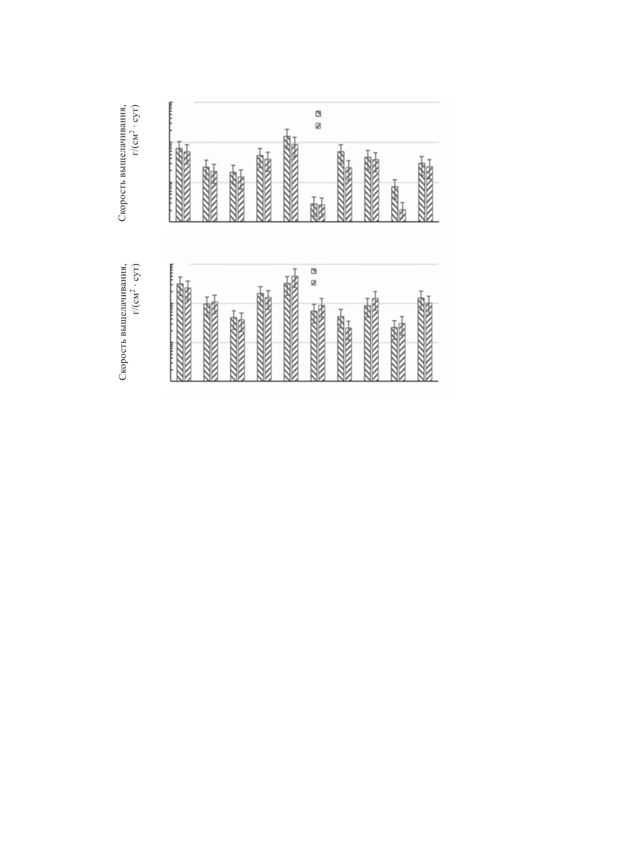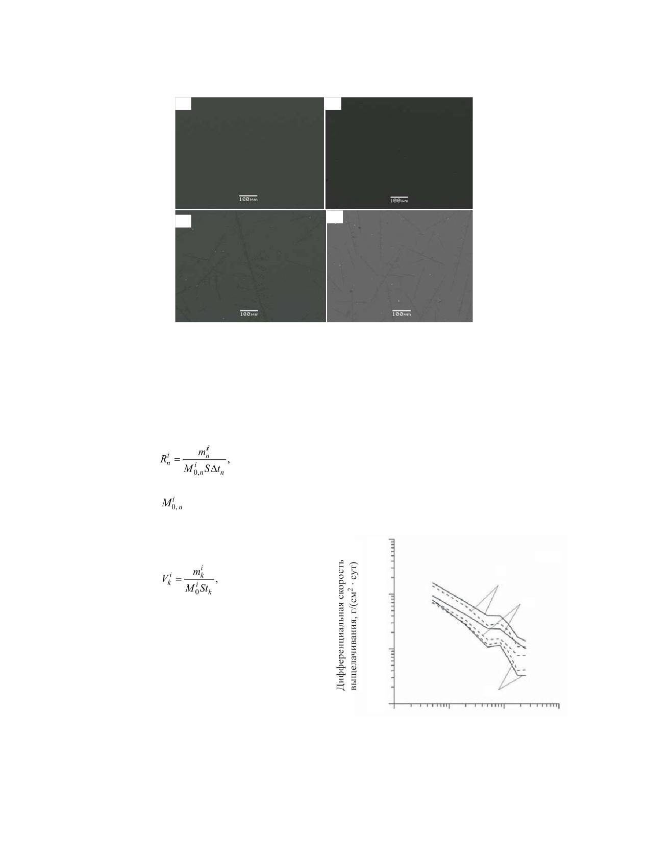 Для обеих температур экспериментов со временем происходит уменьшение скорости выщелачивания