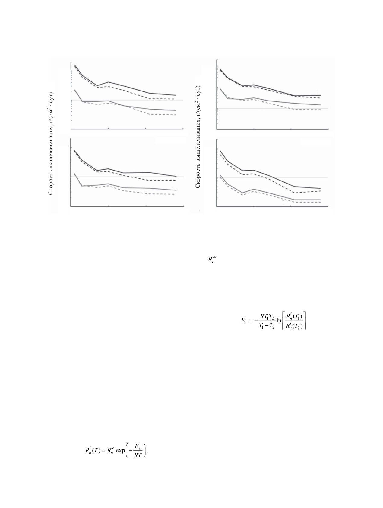 несколько возрастает. Зависимость интенсивности выщелачивания стекол от температуры описывается
