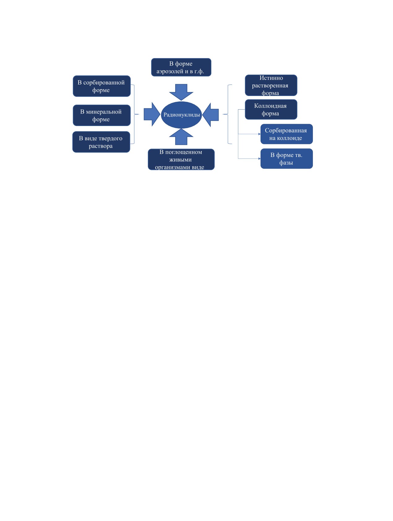 Рис. 1. Схема форм нахождения радионуклидов в водоемах.