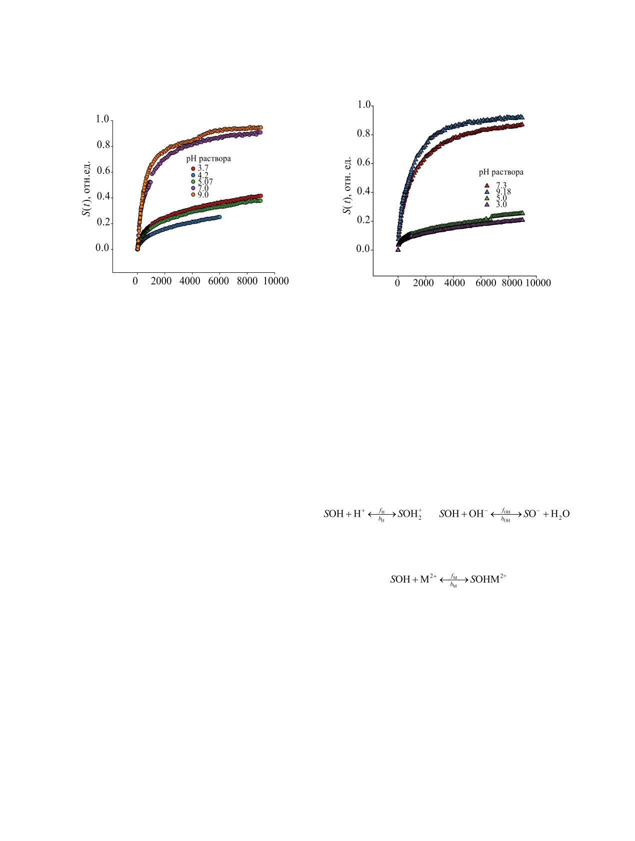 постоянной ионной силой в отсутствие и в присутствии природных гуминовых кислот (ГК). Получены