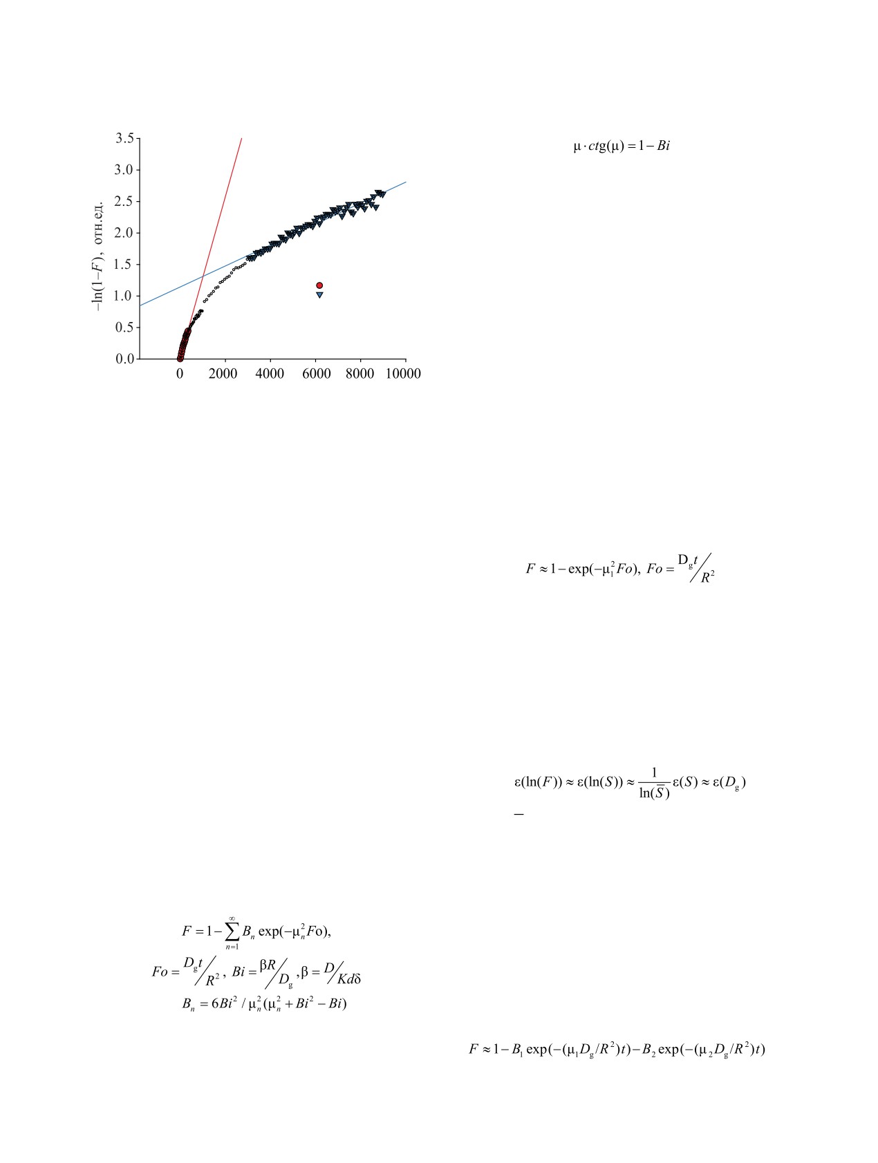 кинетики сорбции Co(II), включающая сменяющие друг друга стадии пленочной и гелевой диффузии