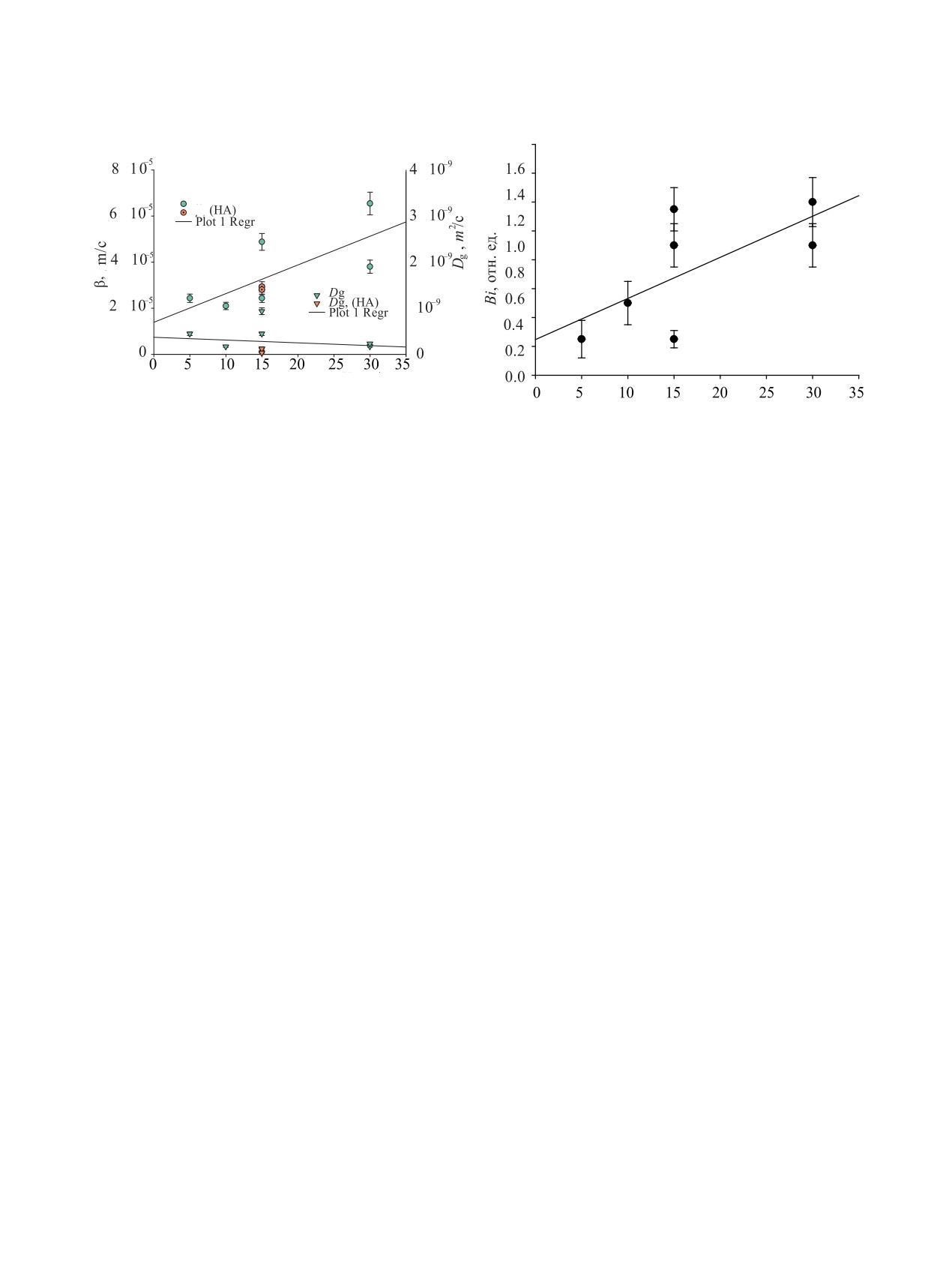 (Dg, м2/с) не зависят от рН раствора, концентрации ГК. Среднее значение Dg - (6.0 ± 4.5)× 10-10 м2/с,