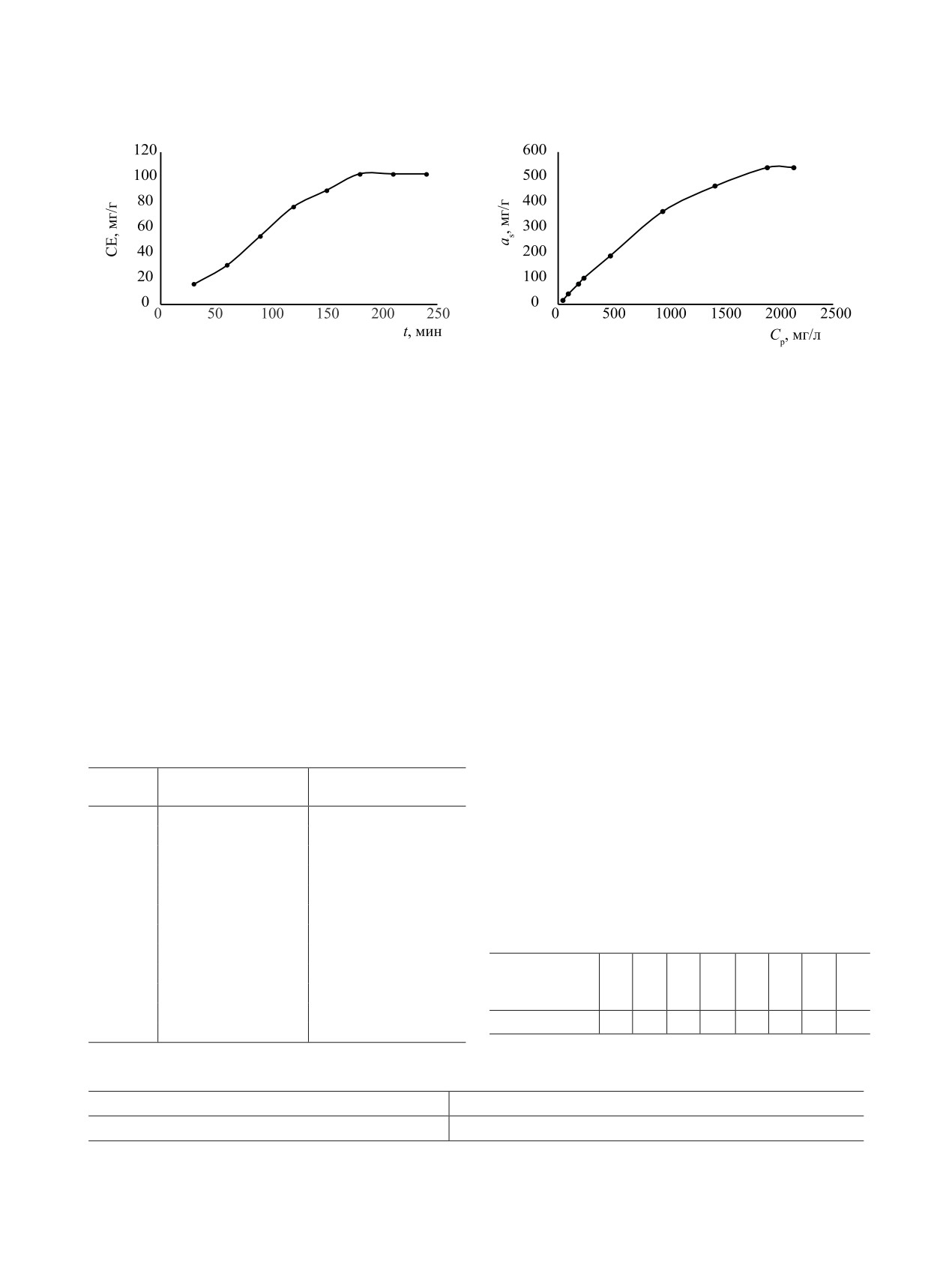 Таблица 1. Зависимость сорбционной емкости (СЕ) от