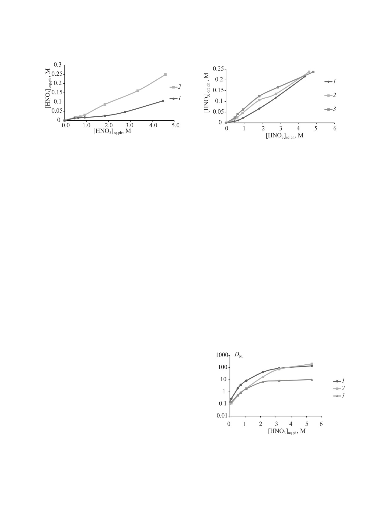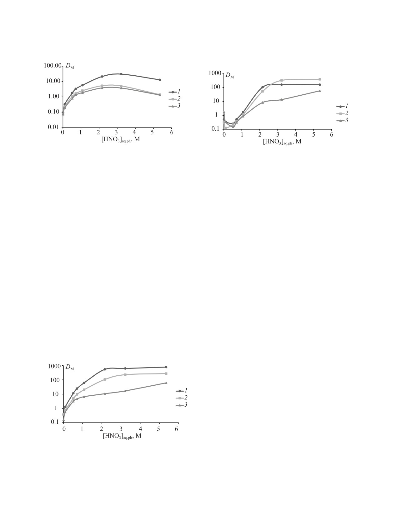 трации HNO3 в равновесной водной фазе. Степень извлечения металла в экстракт увеличивается в ряду