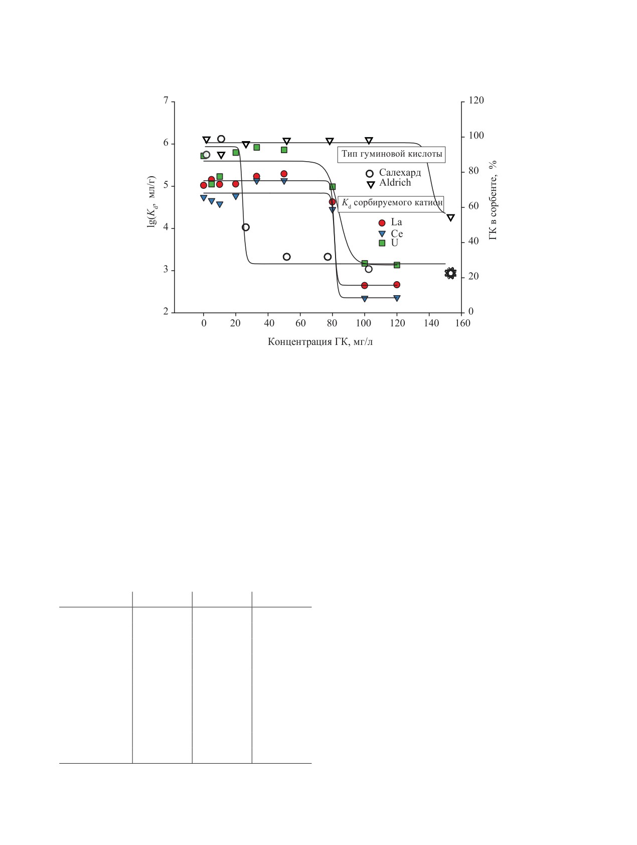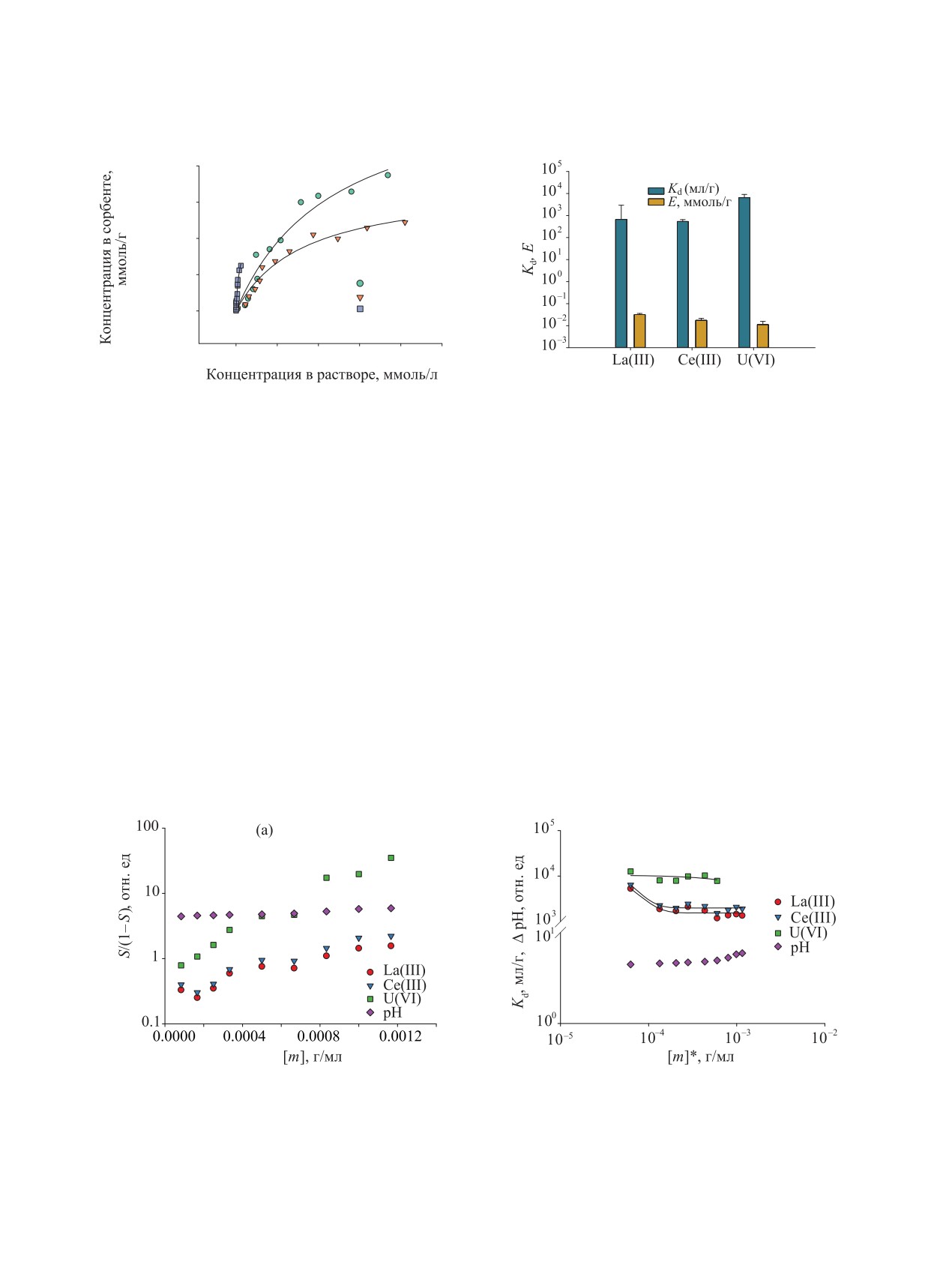 вой константы гидролиза катионов La(III), Ce(III), U(VI) доказывает адекватность выбранной сорбци-