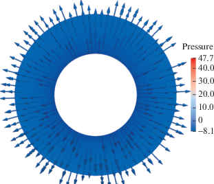 Рисунок 2 иллюстрирует линии тока в точке прилипания, где поле давления равно нулю.