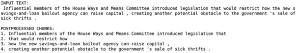 Пример разделения входного предложения из валидационной части PTB-CA на chunks с помощью правил и пост-обработки, описанных выше, приведен на рис. 4.