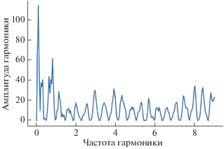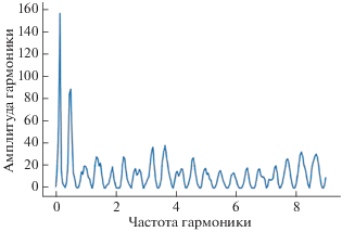 В результате были оценены амплитуды периодических составляющих (синфазных и квадратурных) в рядах высот, определенных на основе ГНСС-данных, для диапазона частот от 0 до 9 Гц (рис. 2–рис. 4).