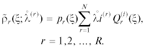 $\tilde {\rho }_{r}^{{}}(\xi {\text{;}}\lambda ) = {{p}_{r}}(\xi )\sum\limits_{i = 1}^N {{{\lambda }_{i}}Q_{r}^{{(i)}}(\xi )} ,\,\,\,\,r = 1,2,...,R$Смысл конструкции (22) состоит в том, что параметры, от которых зависят аналитические выражения искомых функций, делаются зависящими от индекса r.