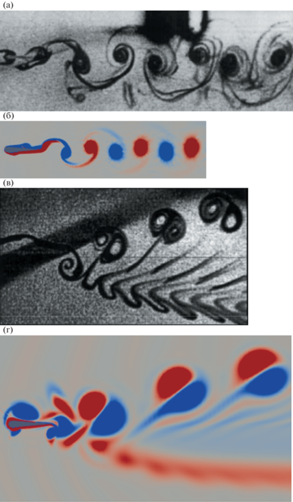 Dynnikova G.Y., Dynnikov Y.A., Guvernyuk S. Mechanism underlying Kármán vortex street breakdown preceding secondary vortex street formation // Phys. Fluids. 2016. V. 28. № 5. P. 054101.