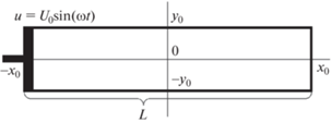 Рассмотрим резонатор –x0 ≤ x ≤ x0, 0 ≤ y ≤ y0 с жесткими стенками (рис. 1). На левой границе возбуждается продольная скорость так, что