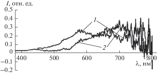 Спектры люминесценции коллоидного раствора, полученного нагреванием системы (CF3COO)2Cd · nH2O –ТАА–ЭА (1), и выделенных из него продуктов (2).