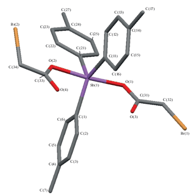 Синтез п-Tol3Sb[OC(O)CH2Br]2 (III). Получили бесцветные кристаллы, выход 99%, tпл = 141°C.