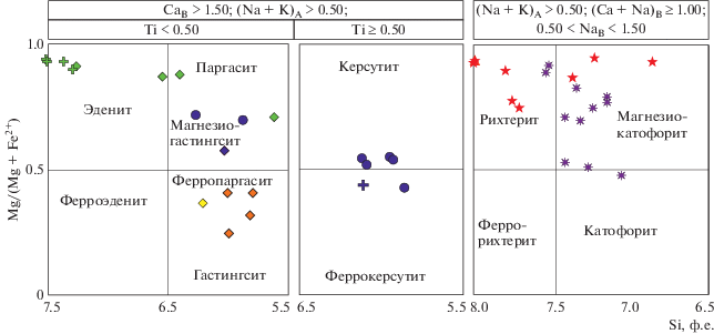 Ridolfi F., Renzulli A. Calcic amphibolites in calc-alkaline and alkaline magmas: Thermobarometric and chemometric empirical aquations valid up to 1.130°C and 2.2 GPa // Contrib. Mineral Petrol. 2012. V. 163. P. 877–895.