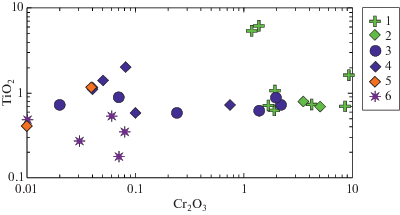 | Cr2O3 | 0.48 | 0.28 | 0.65 | 0.11 | 0.00 | 0.00 | 0.10 | 0.30 | 0.00 | 0.03 | 0.02 | 0.01 |