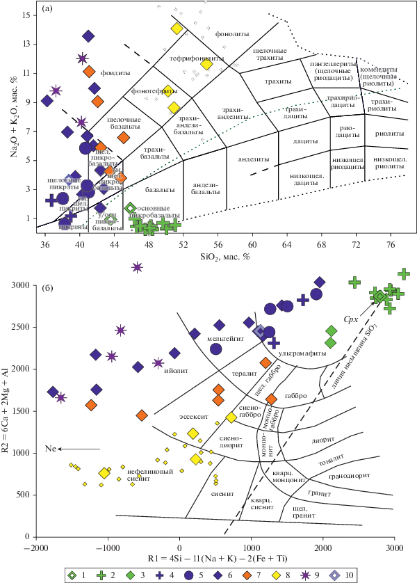 De La Roche H., Leterrier J., Grandclaude P., Marchal M. A classification of volcanic and plutonic rocks using R1–R2 diagram and major-element analyses: Its relationships with current nomenclature // Chem. Geol. 1980. V. 29. P. 183–210.