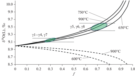 Bucholz C.E., Jagoutz O., VanTongeren J.A. et al. Oxygen isotope trajectories of crystallizing melts: Insights from modeling and the plutonic record // Geochim. Cosmochim. Acta. 2017. V. 207. P. 154–184.