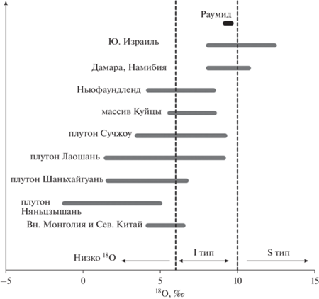 Изотопная геохимия кислорода позволяет решать вопросы, связанные с условиями кристаллизации расплавов, динамикой остывания пород и автометаморфизмом, т.е. основными факторами формирования гранитного тела. Однако величина δ18О не является индикатором геодинамических обстановок формирования гранитов, и в случае гранитов А-типа она, прежде всего, отражает разнообразие протолитов кислых расплавов.