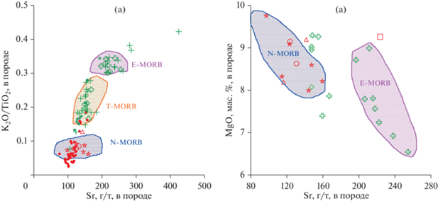 4. Судя по полученным данным о характере вариаций содержаний Cl, U и Sr, в изученных закалочных стеклах, относящихся к семейству N‑MORB, признаки внутрикоровой контаминации в них отсутствуют.