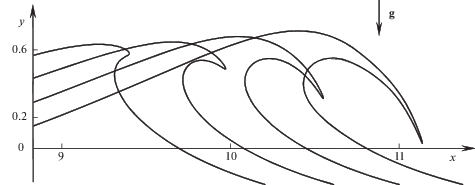 Исследованию процесса обрушения волн также посвящено большое количество работ (см., например, обзор [8]). Для сравнения будем использовать результаты [9], где также был построен численный алгоритм решения задачи.