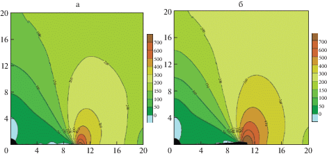 а – Режим СВМУ: $P = 100$ МПа, ${{N}_{k}} = 1.350 \times {{10}^{9}}$, ${{N}_{i}} = 2.903 \times {{10}^{4}}$, ${{N}_{f}} = 1.351 \times {{10}^{9}}$; б – Режим МНЦУ: $P = 180$ МПа, ${{N}_{k}} = 1.009 \times {{10}^{6}}$, ${{N}_{i}} = 1.971 \times {{10}^{4}}$, ${{N}_{f}} = 1.057 \times {{10}^{6}}$.