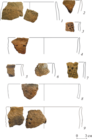 Fig. 4. Pottery of the early stage of the Dyakovo culture from the excavation site in the Great Kremlin Garden (1–9)