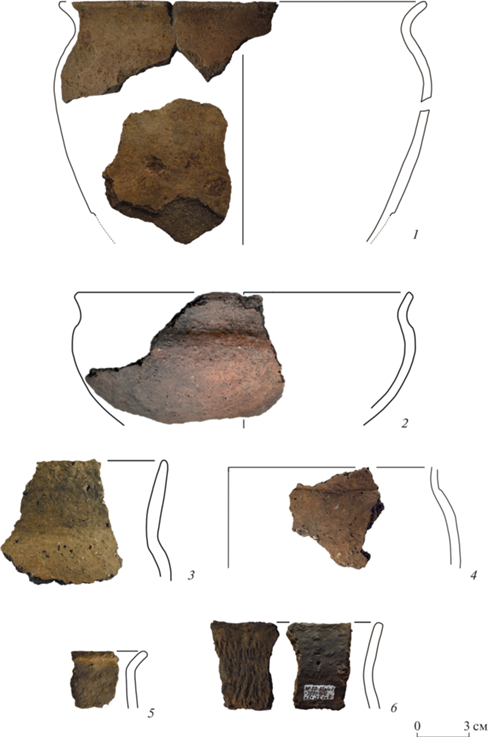 Fig. 5. Pottery of the late Dyakovo culture from the excavation site in the Great Kremlin Garden (1–6)